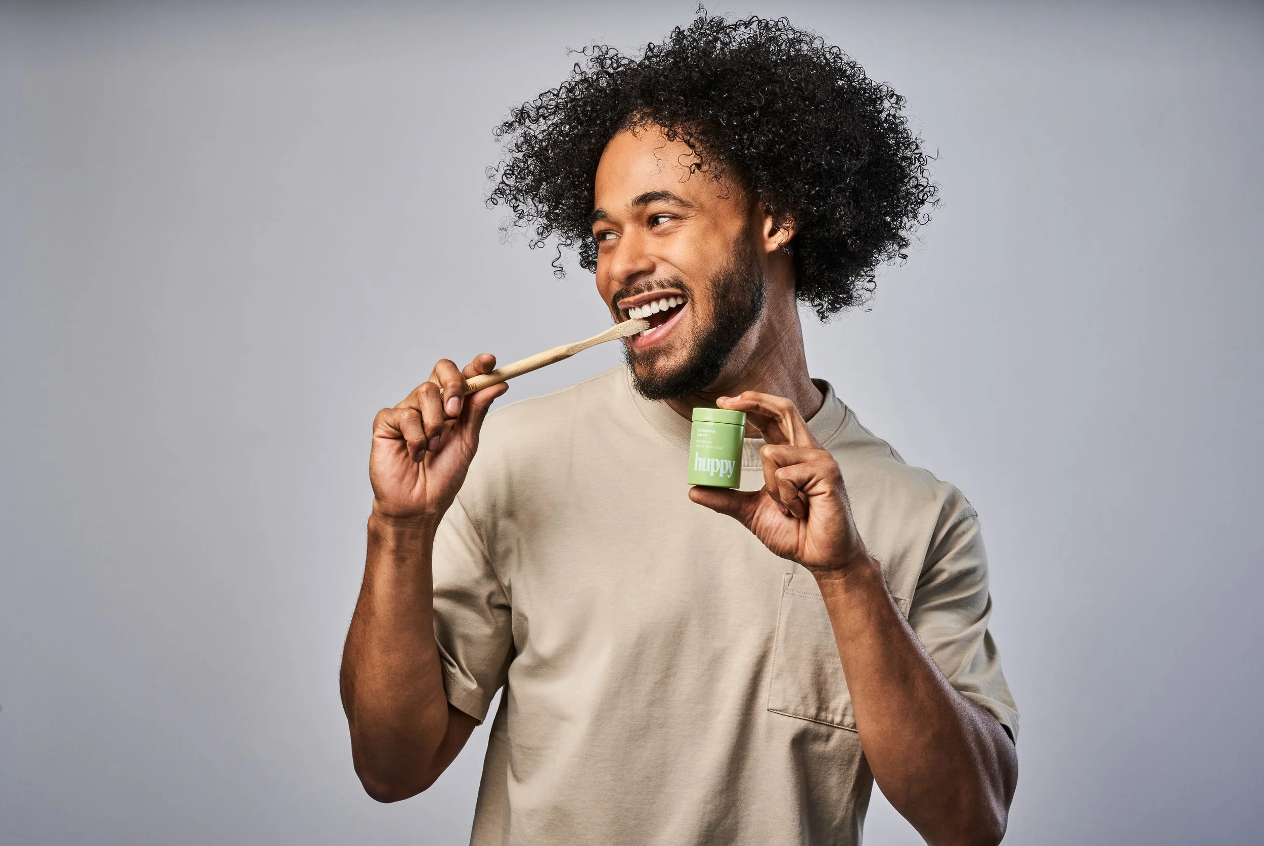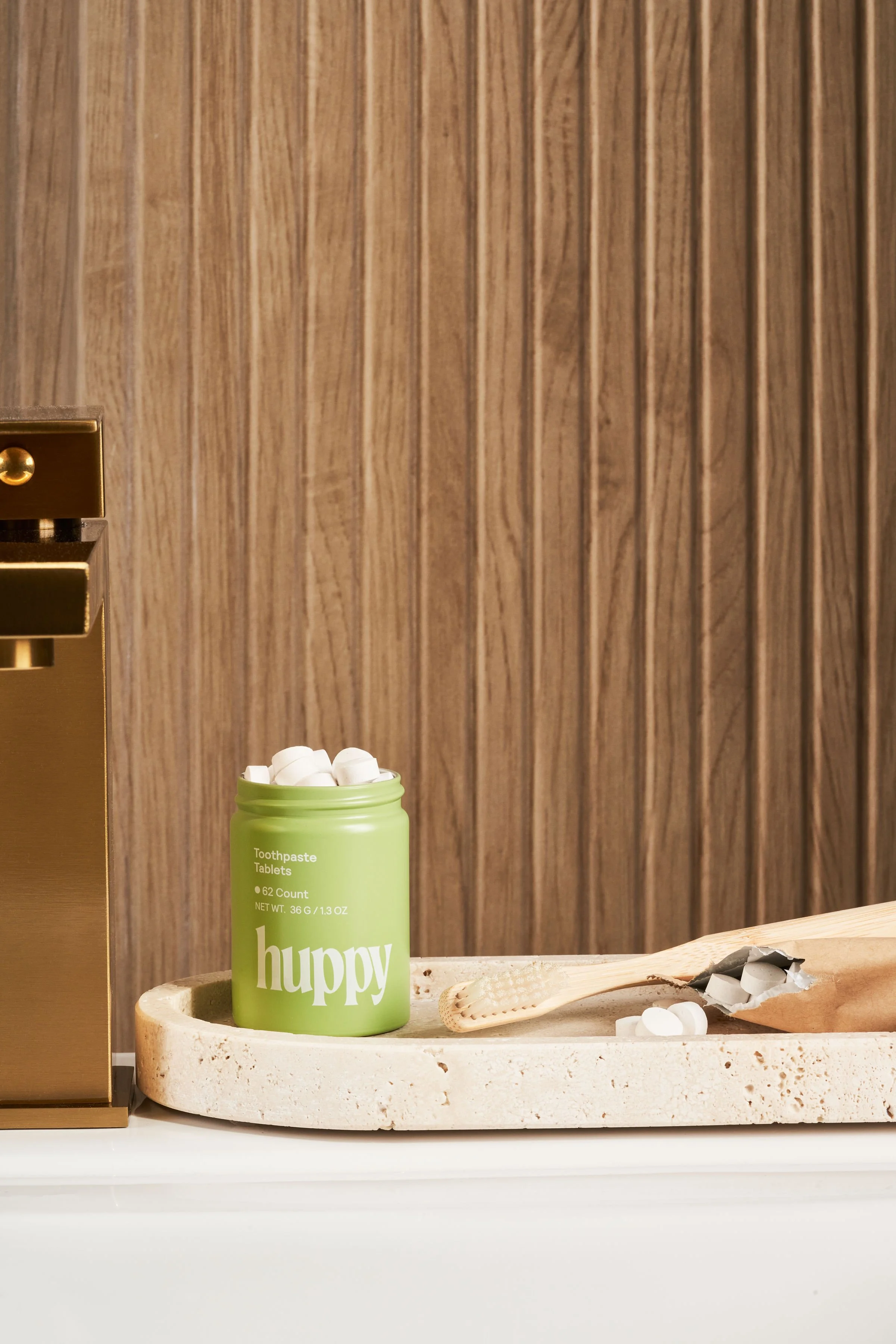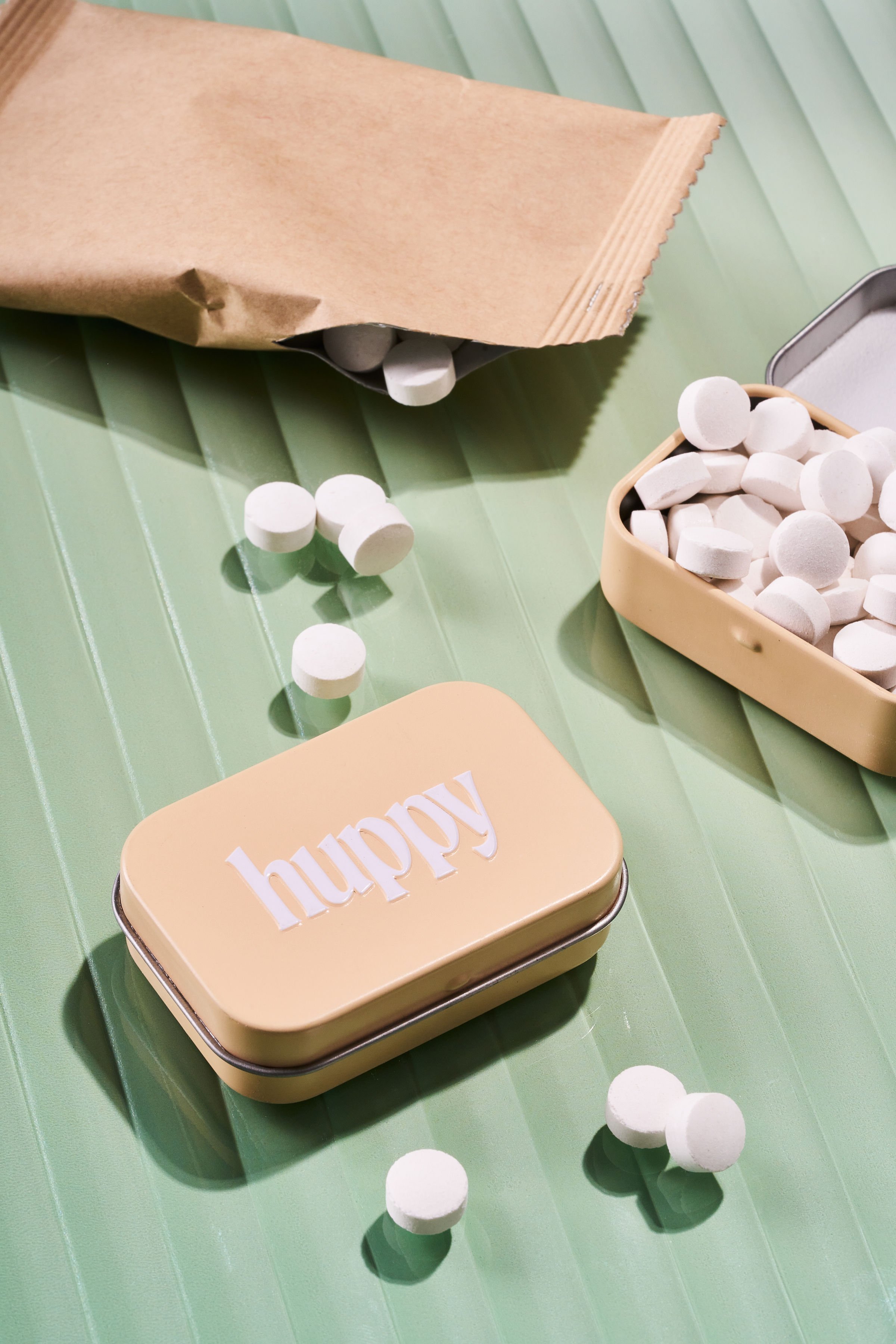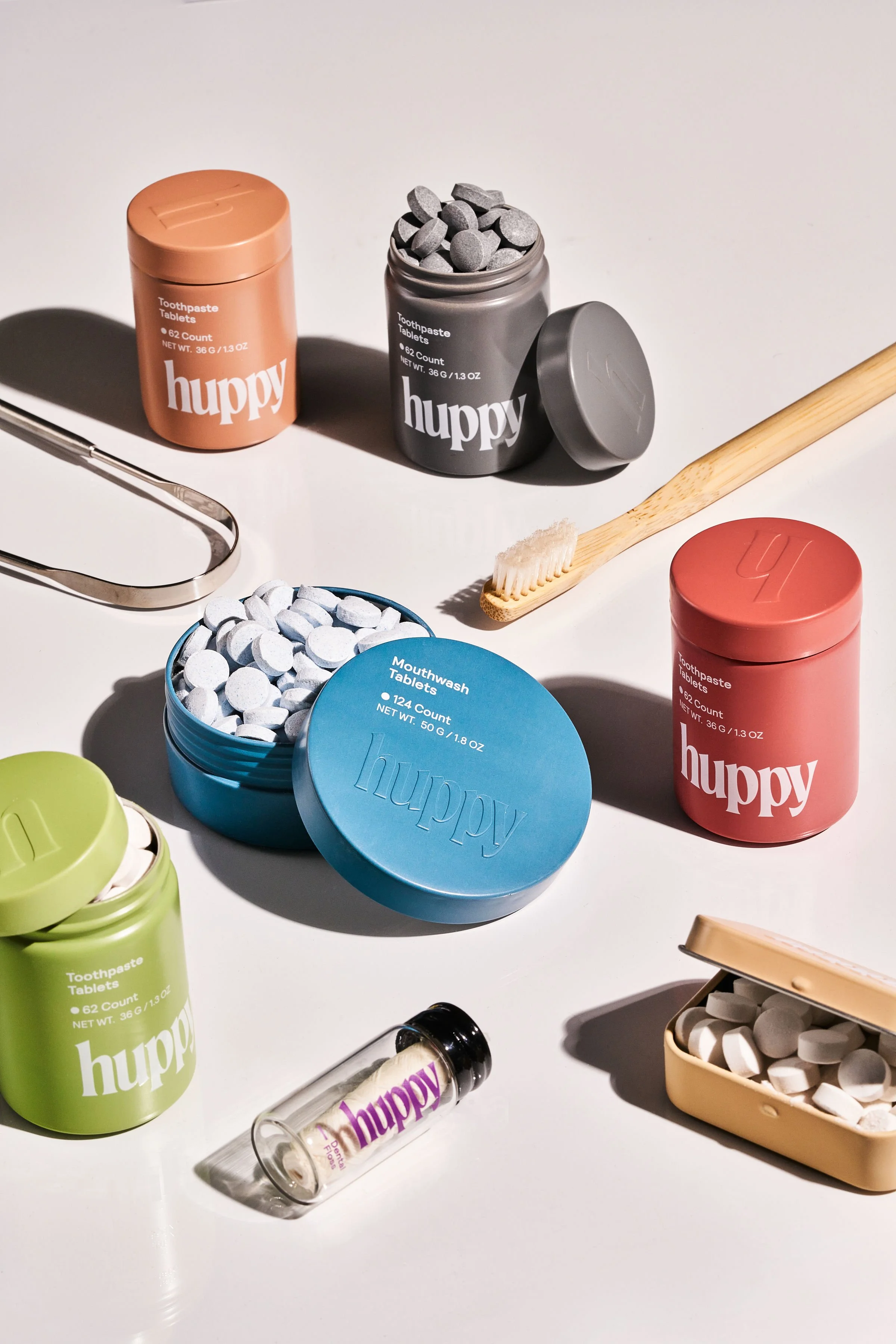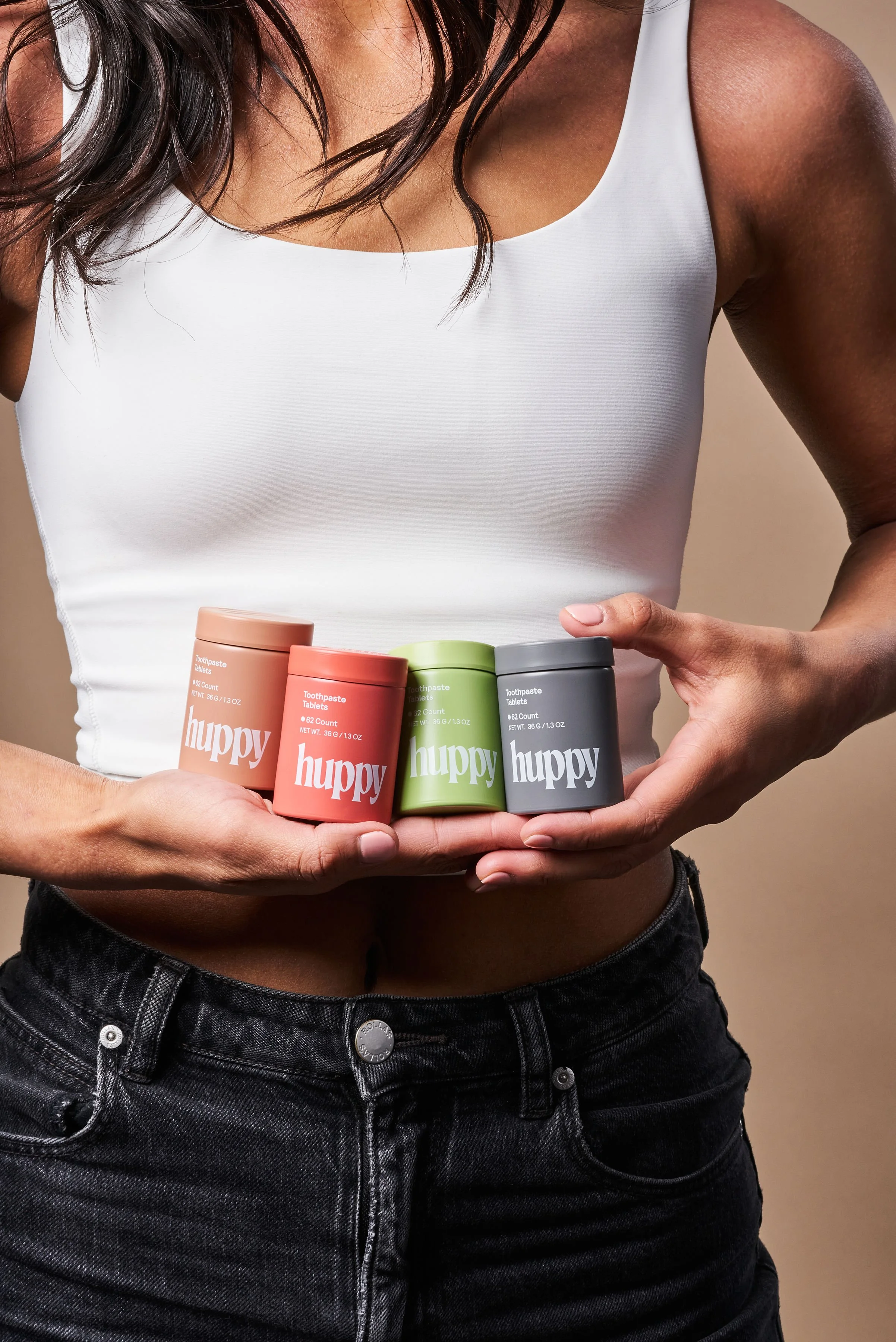huppy is a personal care brand doing better-for-you toothpaste tablets and plastic-free personal care items. This one was a full supercult production- strategy, identity design, package design, photography styling, creative direction, and a photoshoot with models and all.
